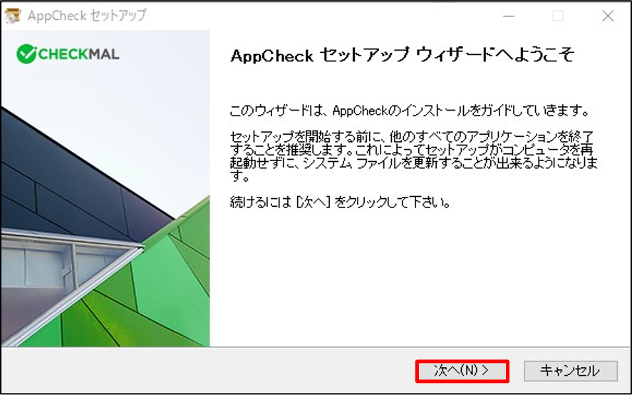1.内容を確認し、「次へ(N)」ボタンをクリックします。
