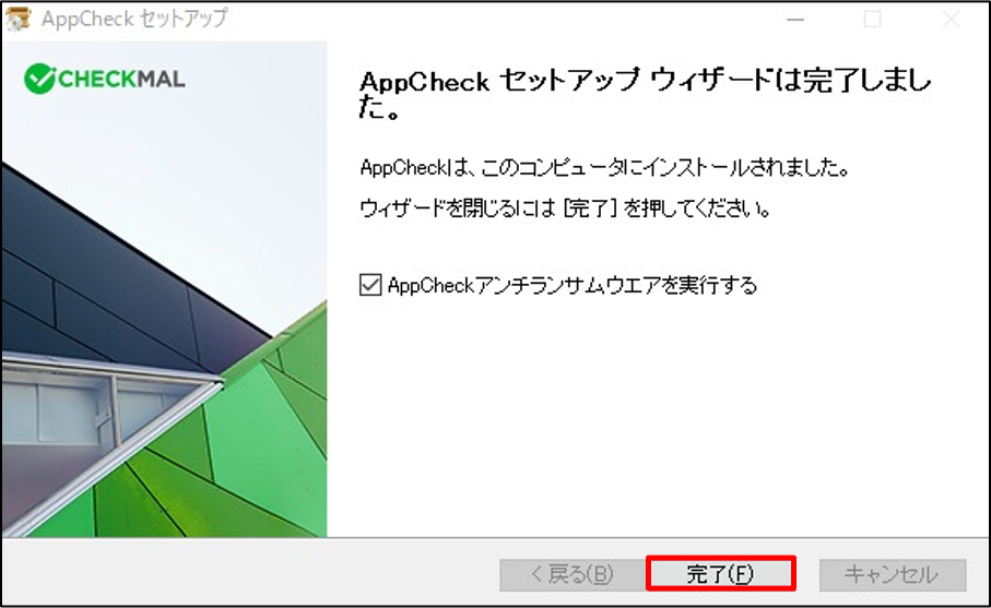 5.インストール完了後、AppCheck画面が表示されたら以下の手順でライセンス認証を行ってください。