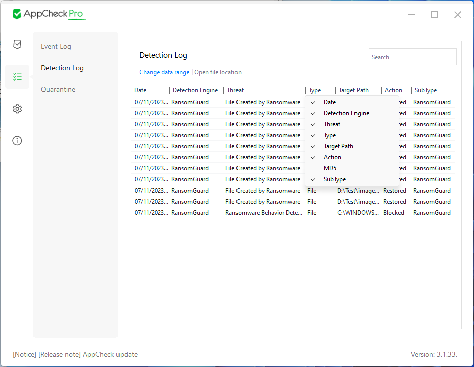 ・デフォルトパスではない場合、AppCheckのインストールパスを更新して再インストールできない問題を修正。(C:\Program Files\CheckMAL\AppCheck)