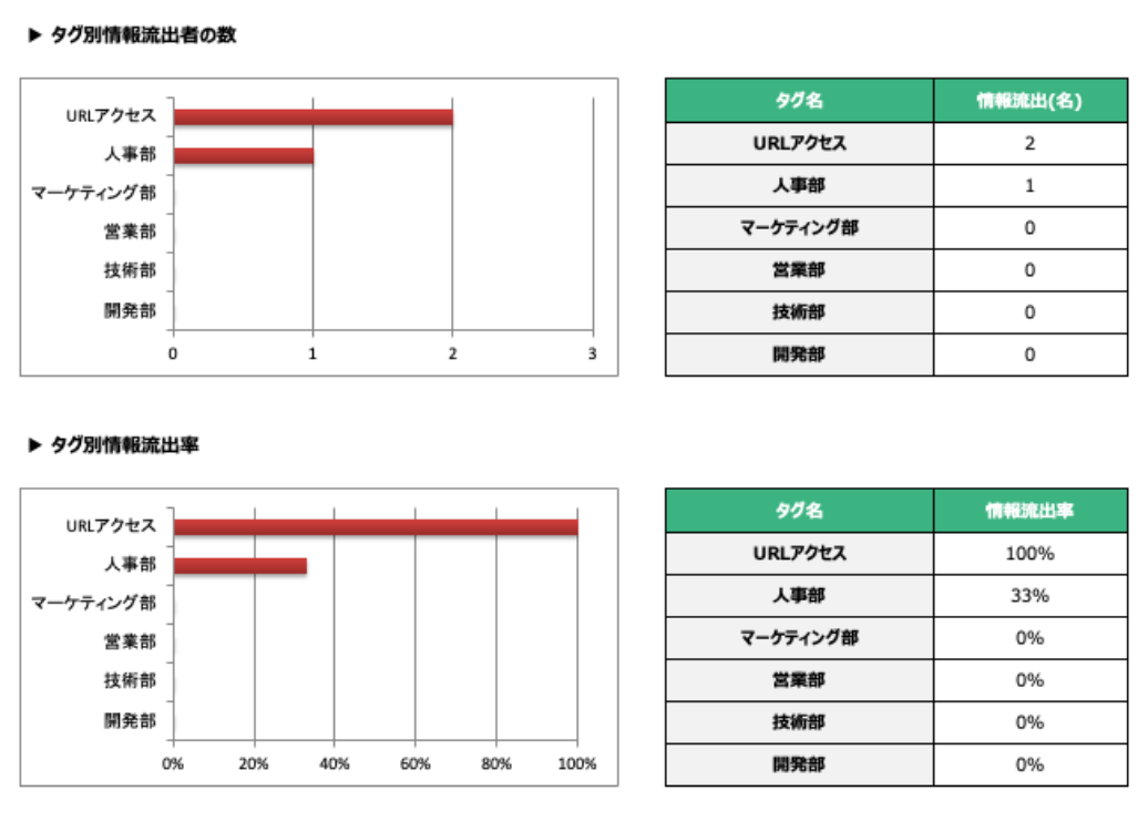 部署や役職はもちろん訓練対象者ごとにメール閲覧、アクセス、ダウンロードなどのステータスが把握可能。レポートも1クリックでダウンロードできます。