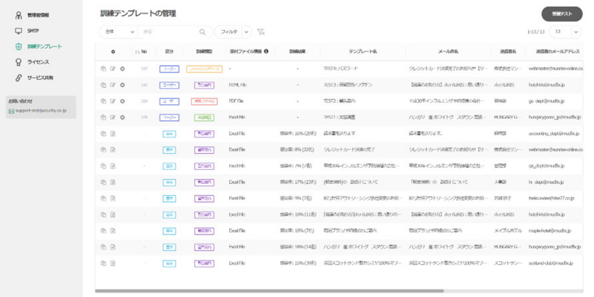 Emotet型など最新テンプレートでトレンドに合わせた訓練が可能